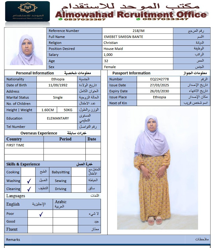 عاملة منزلية