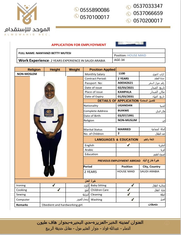 عاملة منزلية