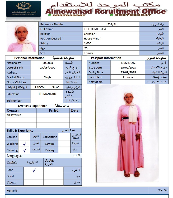 عاملة منزلية